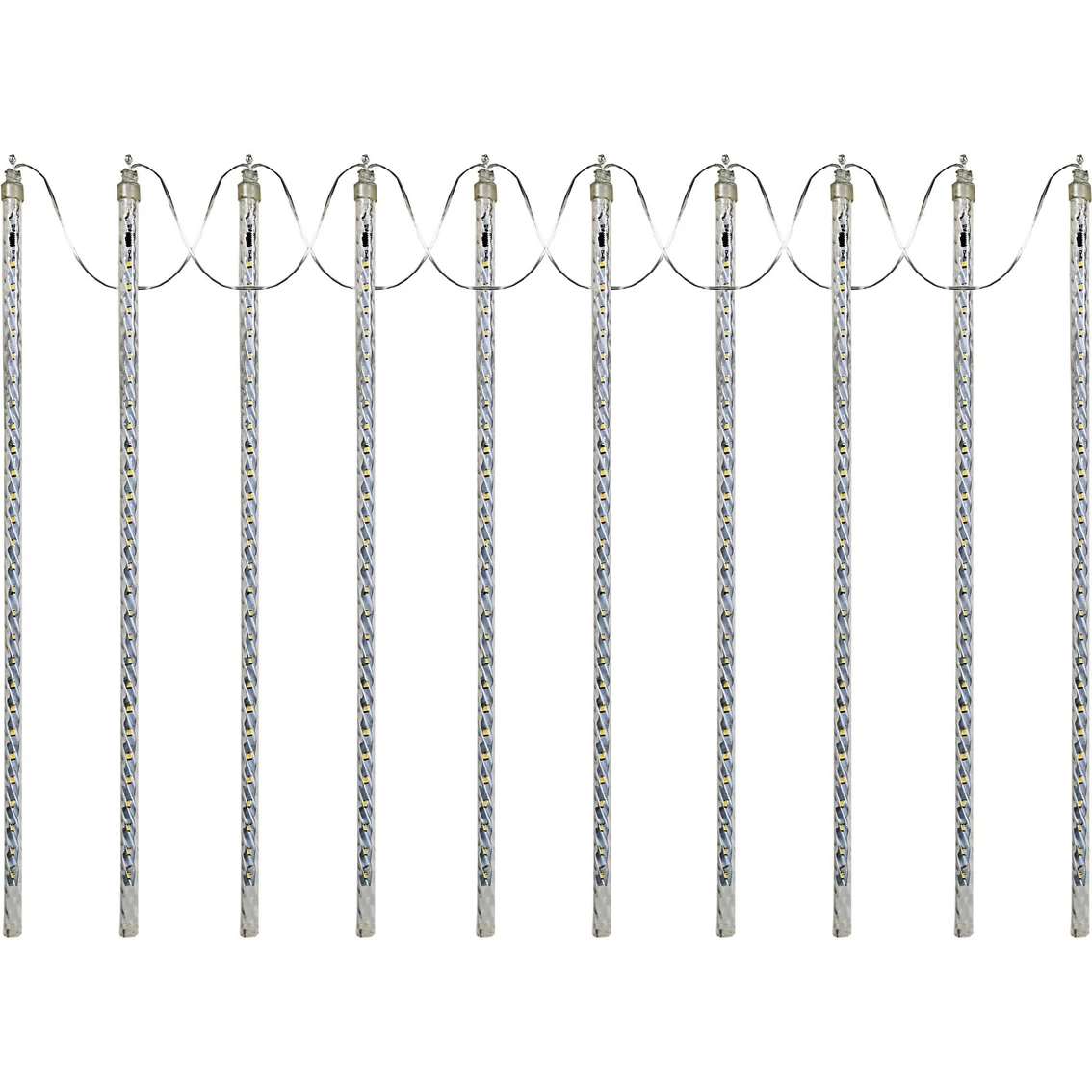 Decorate your home with the Alpine Corporation’s 108 inches Long Hanging Icicle Lights! This strand of 10 light-up icicles features 54 warm white LED lights per icicle and is an eye-catching design for the festive Christmas season. It makes a great addition to your outdoor scenery with its attractive LED lights that provide a beautiful, dazzling display at night. Setup is easy with this festive decor – simply hang it on a hook at an elevated height for a stunning decoration. It meets safety standards with its UL listed plug-in adaptor. The icicle strand is compact and perfect for storing until the holiday season begins. Each icicle measures 20 inch tall and the strand is a total of 108 inches long, ensuring the Alpine Corporation Hanging Icicle Lights with Chasing Warm White LED Lights make the perfect addition to your outdoor holiday displays. Model: COR134WW-10.