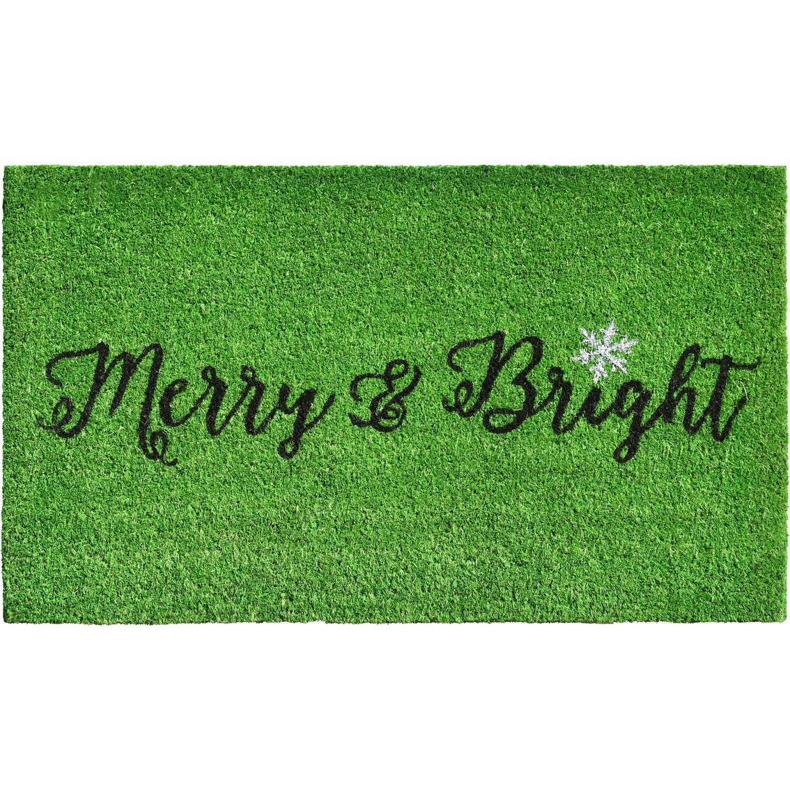 Callowaymills Green Merry & Bright 17 x 29 in. Doormat is made of natural coir, a dense fiber that is naturally mold and mildew resistant. Coir is a renewable resource that is durable and coarse, excellent for scraping shoes clean. Vinyl backed for increased durability and to help prevent movement, coir doormats are weather tolerant, absorb moisture and retain their shape. For best results keep in a sheltered area such as a covered porch, keeping extreme moisture and sunlight to a minimum. Vacuum, sweep or lightly hose clean. Model: 105091729.