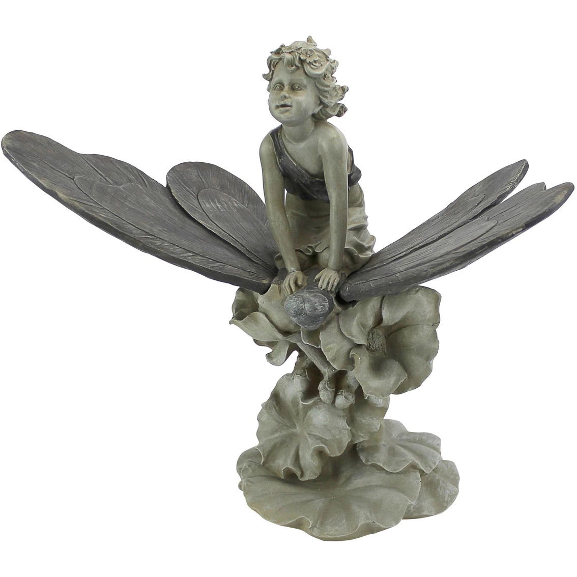 Magic is afoot as the newest fairy-child takes to the air atop her mystical butterfly in this fanciful sculpture. Exquisitely sculpted at one-and-a-half feet high from delicate wings to petal-strewn base, this Toscano exclusive is cast in quality designer resin with a two-tone finish to highlight every nuance of this whimsical statue for home or garden gallery. Measurements: 22 in. W x 11.5 in. D x 18.5 in. H. Weight: 10 lbs. Model: EU41630.