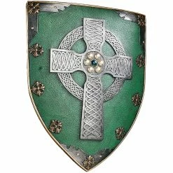 Emblazon your walls with the legendary shield of faith that Celtic warriors carried into battle! This exclusive, medieval-style, nearly foot-and-a-half tall replica shield from Design Toscano is cast in quality designer resin and hand-painted one piece at a time with an antiqued emerald green and faux metallic hue. Model: CL41032.