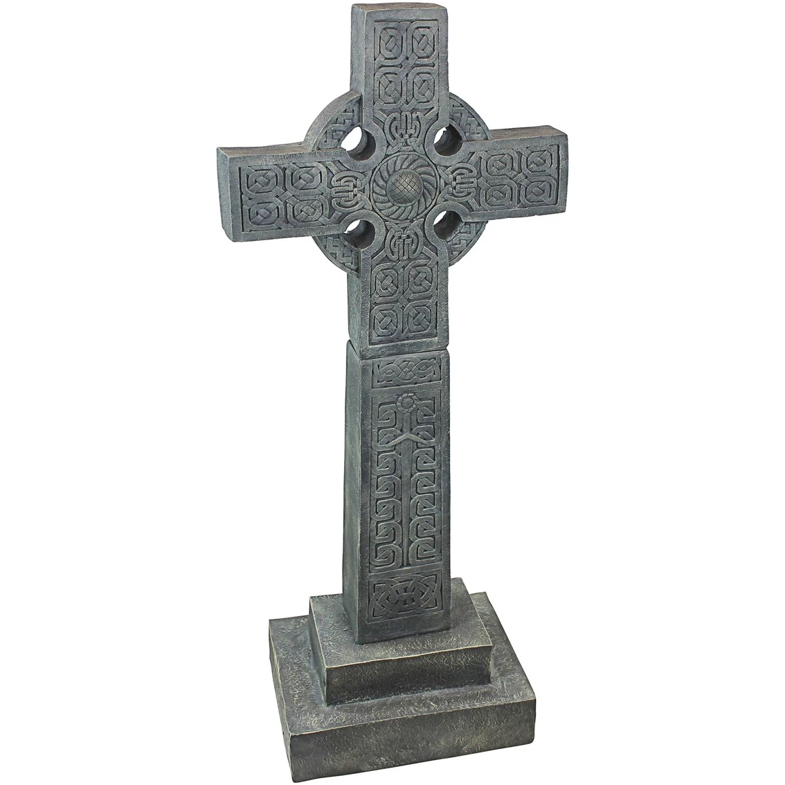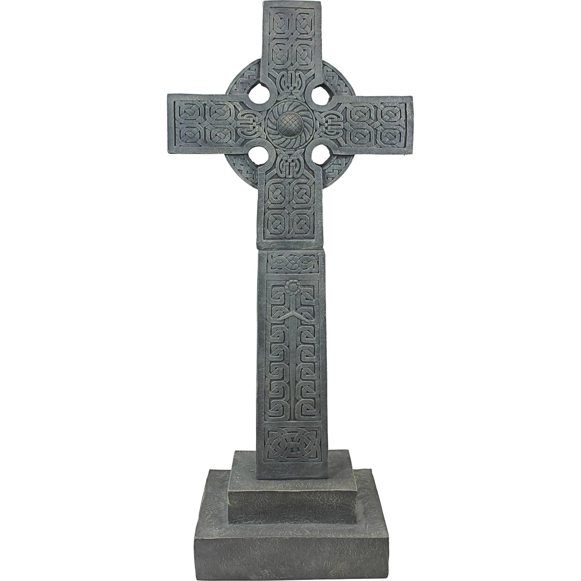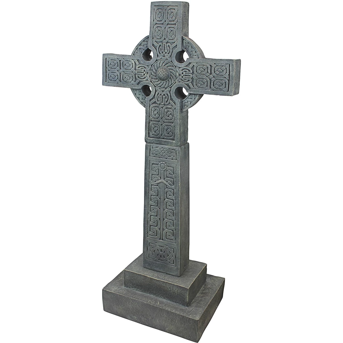 At over four-and-a-half-feet tall, the Celtic Chisholm Cross continues the rich Gothic tradition of spiritual icons dotting the picturesque Scottish countryside. With its prominent medieval heraldic sword and abundant Celtic knot work, you’ll be awestruck by this inspirational original cross sculpture located near Erchless Castle in Scotland. The Design Toscano-exclusive Celtic Cross statue is cast in quality designer resin with a faux granite finish to lend its medieval mysticism to home or garden. Sand should be placed in the base for extra support. Ships in 3 pieces. Simple assembly required. 24.5 x 14.5 x 56 in. 40 lb. Model: NG30365.