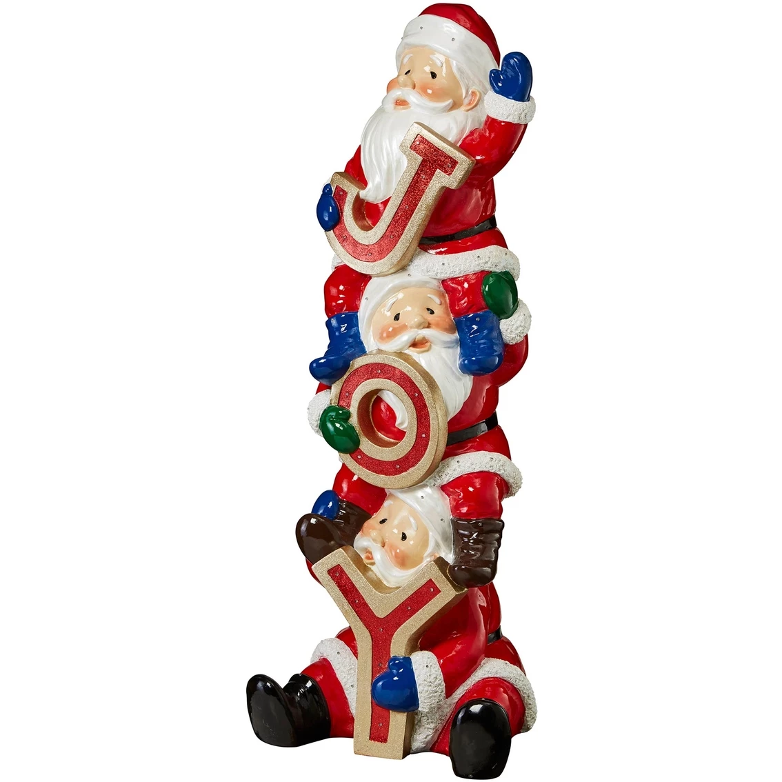 Santa and his helpers light up the season indoors or out with a little illuminated JOY in a five-foot holiday focal point glistening with dozens of twinkling LED lights! A smiling trio of St. Nicks, each with fur-trimmed coats and chubby cheeks, waves a traditional greeting of seasonal fun. This Design Toscano holiday statue is cast in quality designer resin and beautifully hand painted from black boots to mittened hands. This large-scale, display-quality holiday sculpture transforms any home, garden, restaurant or hotel into something truly magnificent! These Christmas celebrants are connected with a 72 in. cord for easy placement. Lights have a 10,000-hour life expectancy. Model: DB383105.