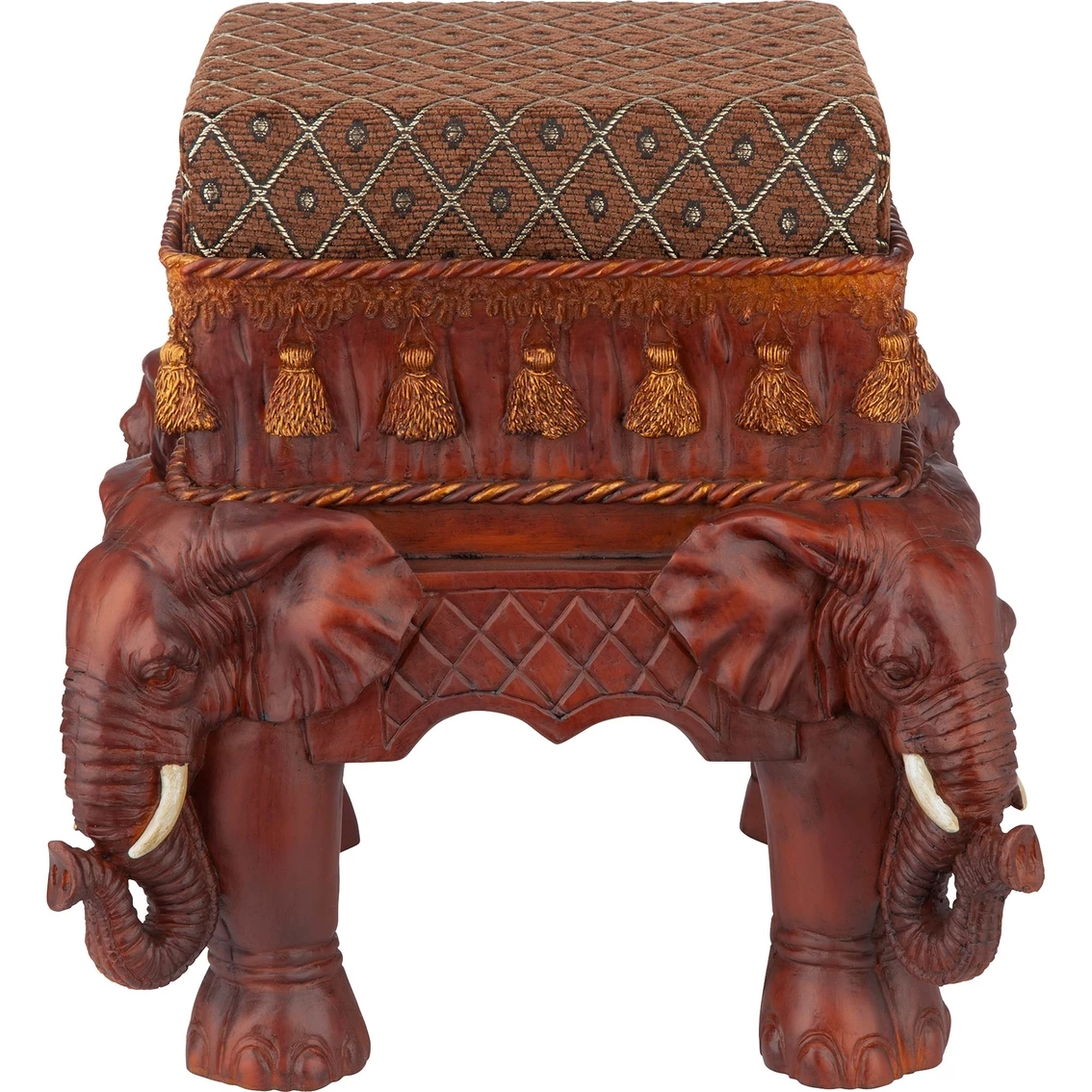 A quartet of deeply carved elephants with faux ivory tusks parades around the perimeter of this stool, sure to lend exotic style to any decor. Cast in quality designer resin and finished in faux mahogany, this Design Toscano exclusive is topped with a richly colored jacquard upholstery for your comfort! Model: NG33063.