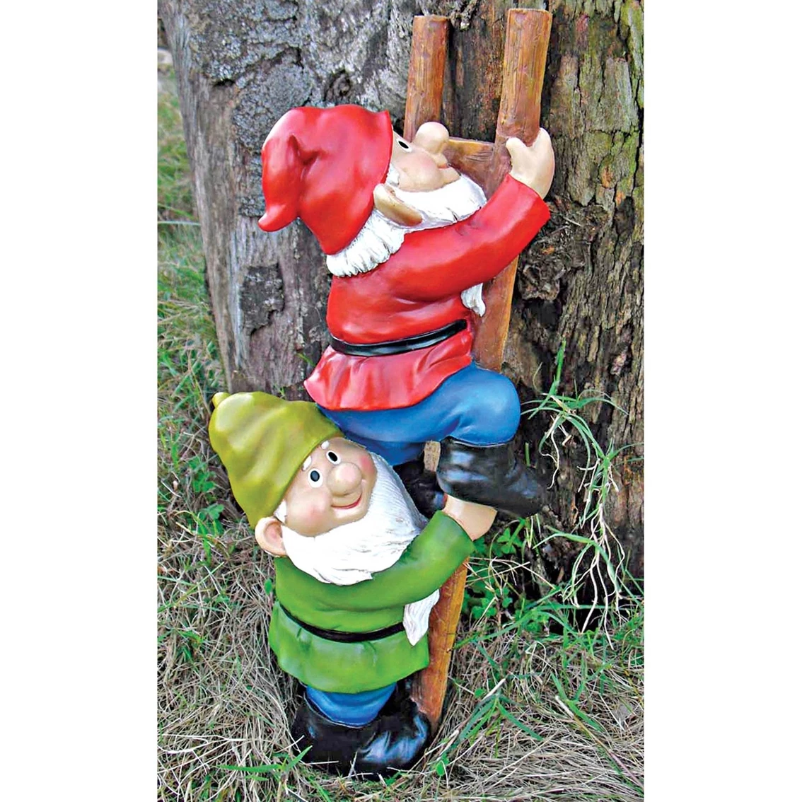 When you could use a little gnome magic in a garden flowerbed or vegetable plot, this Design Toscano climbing garden gnomes sculpture rises to the occasion. Sporting pointy elf hats and full gnome attire, these exclusive garden Gnomes are heads above all other gnomes, extending a warm welcome to all visitors to your home or garden. Imaginatively sculpted, this figurine is lovingly made of quality designer resin and then hand-painted one piece at a time exclusively by Toscano skilled artisans. It measures 6 in. W x 5.5 in. D x 12 in. H and weighs 1 lb.
