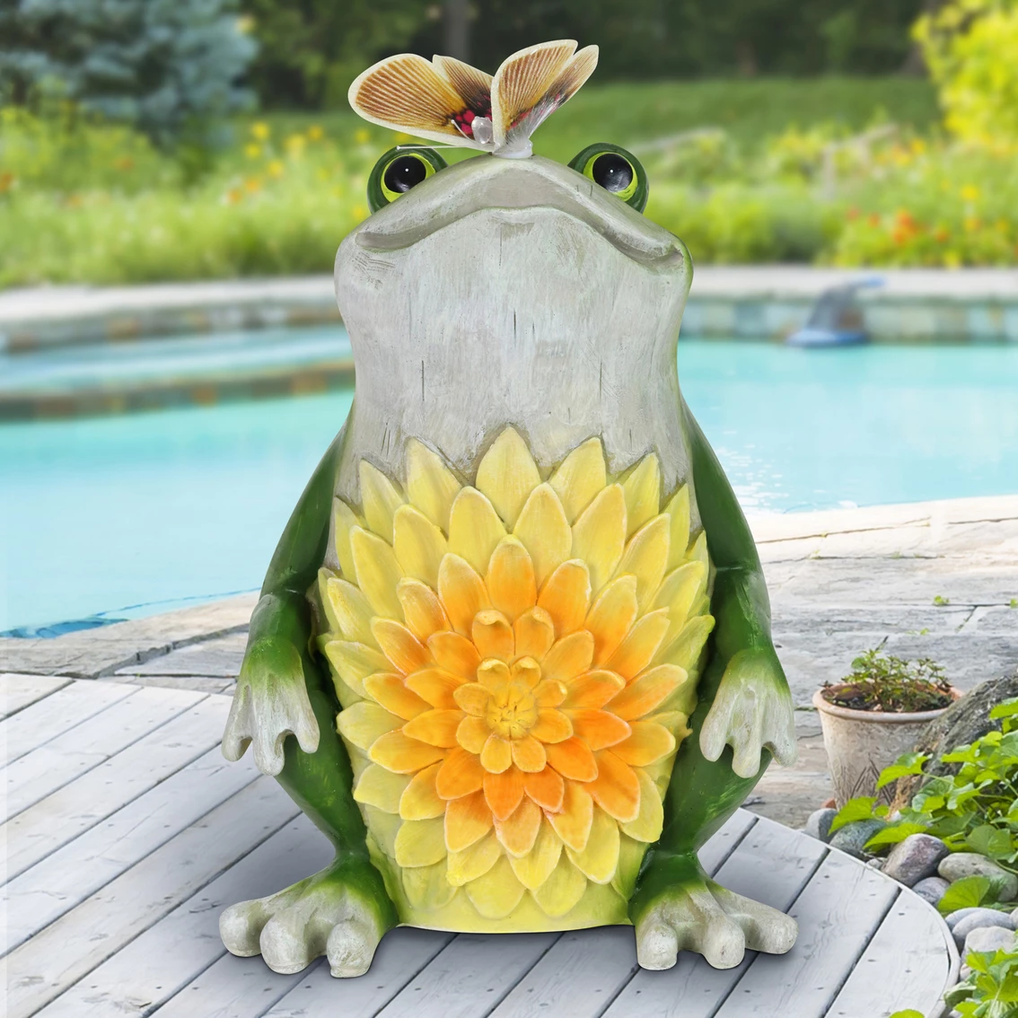 Outlet ๐ Exhart Solar Garden Frog Statue With Fiber Optic Color Changing Butterfly โญ