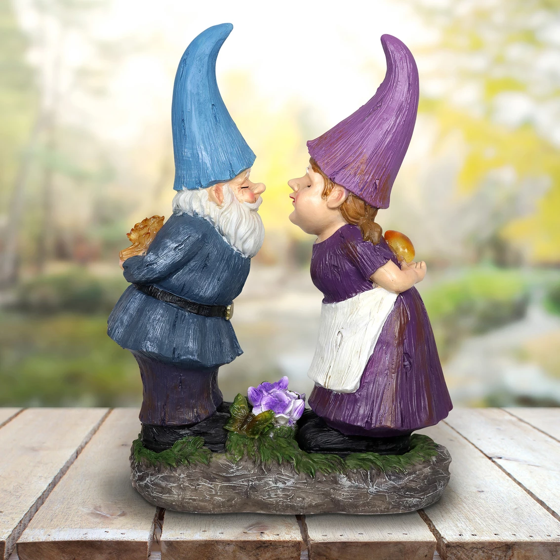 Exhart Sweet Solar Smooching Gnomes come together instantly adding a touch of warmth and love to your space. Beautifully detailed garden art features solar light that will automatically illuminate at dusk. Sure to warm your heart!