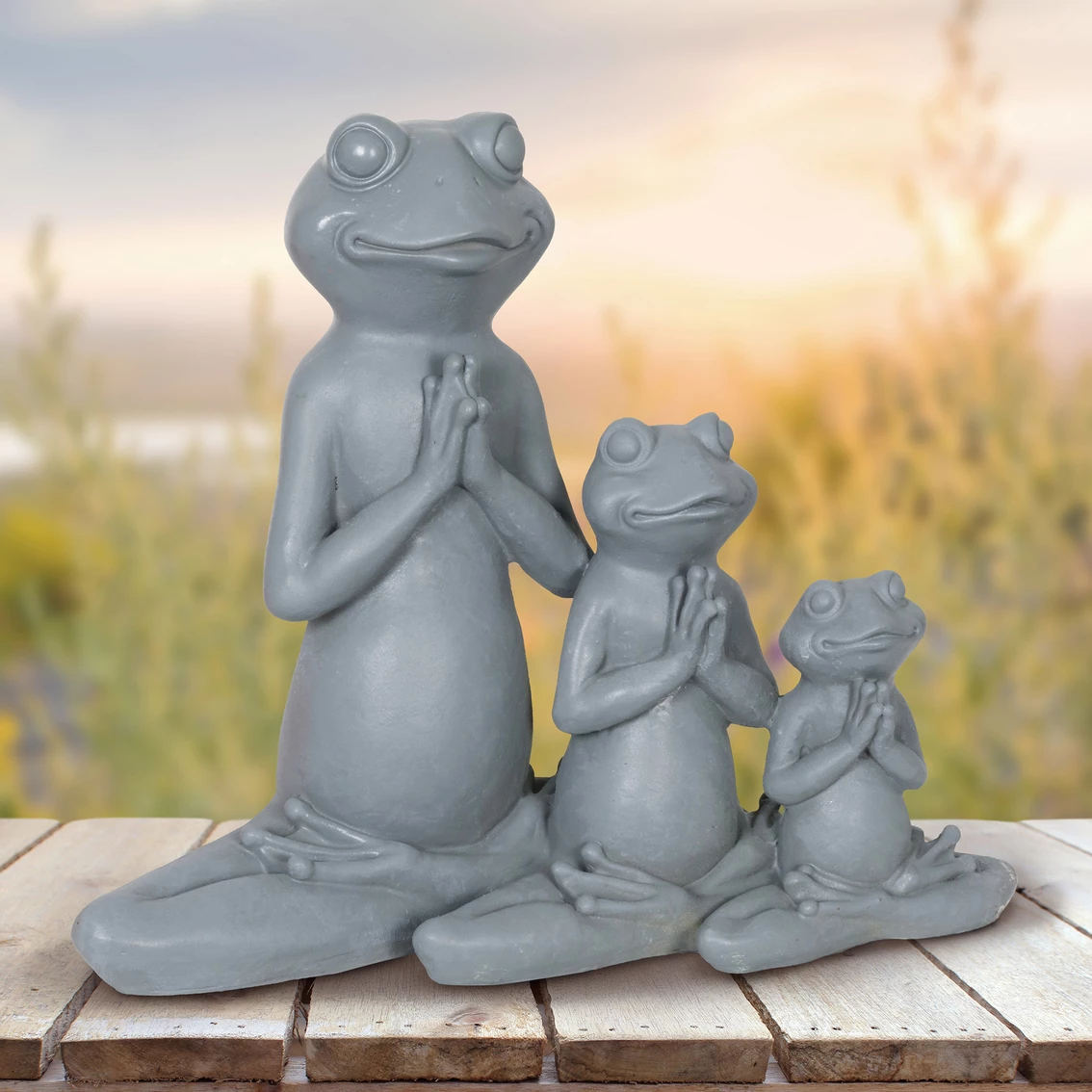 Three Meditating Yoga Frogs in a Lotus Pose make a wonderful reminder to get grounded and connected to nature in your garden. Exhart crafts the natural stone finish of durable resin built to withstand the elements indoors or out. Makes a wonderful gift for the inspired yogi in your life!