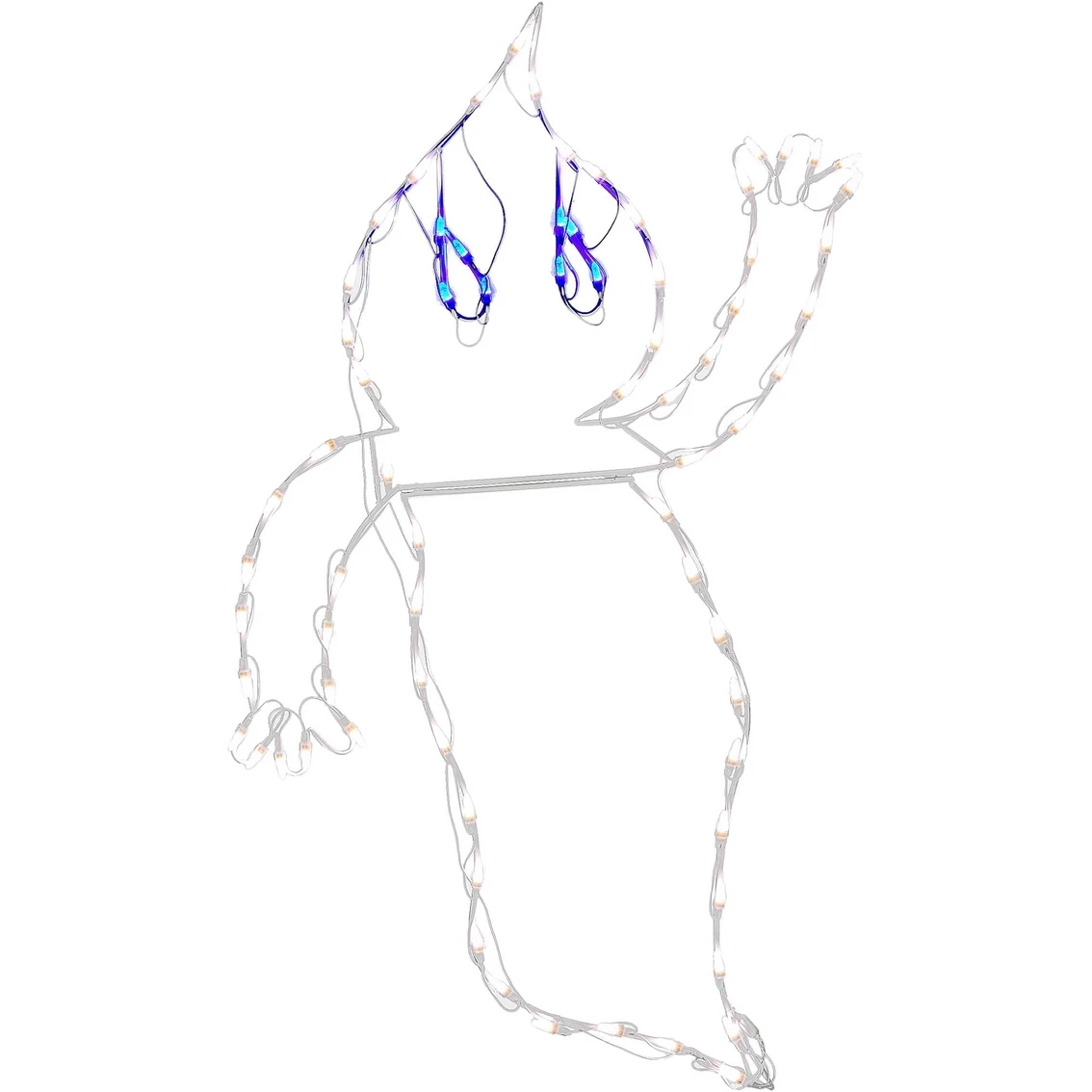 This Halloween decoration from National Tree Company features strong single frame powder-coated steel construction designed in the outline of a waving ghost. A total of 72 LED lights that glow brightly using a combination of white and blue colored bulbs are wrapped around the frame. This fun and unique seasonal trimming will brighten your Halloween festivities for years to come. It is for indoor or outdoor display. Model: HO76-66029-1.