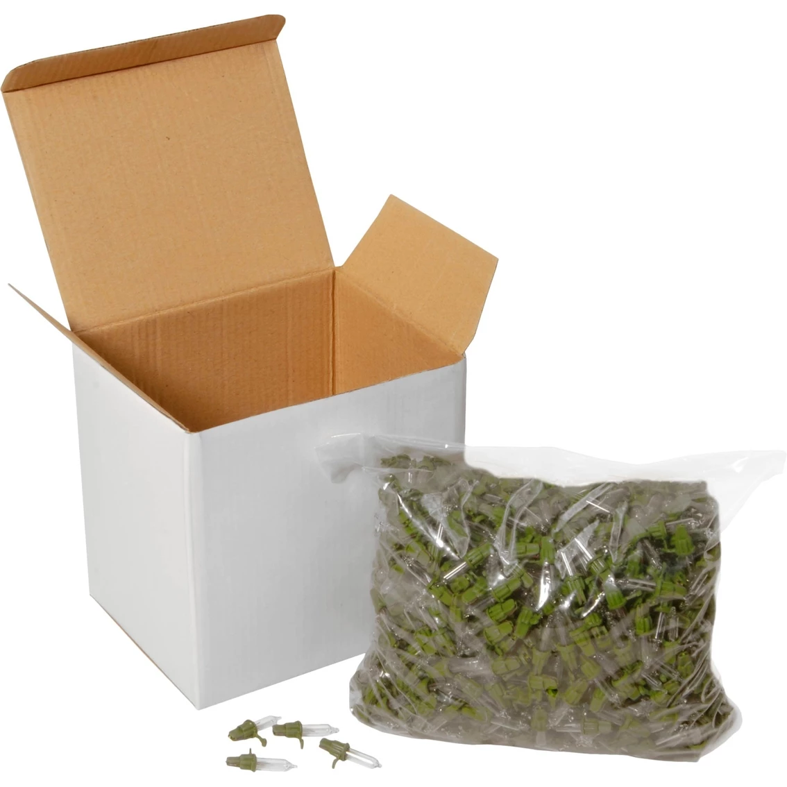 This package from National Tree Company contains 1000 UL-listed replacement bulbs for use with 50, 100 or 150 bulb indoor/outdoor light strings. 2.5 volts. Model: RGB-1000C.