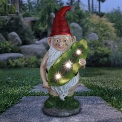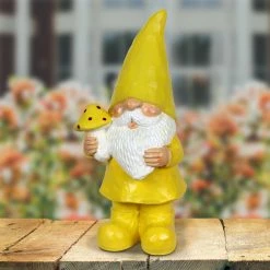 Outlet 🎁 Exhart Solar Yellow Yokum Woodland Gnome With Mushroom 11 In. Garden Statue 🌟