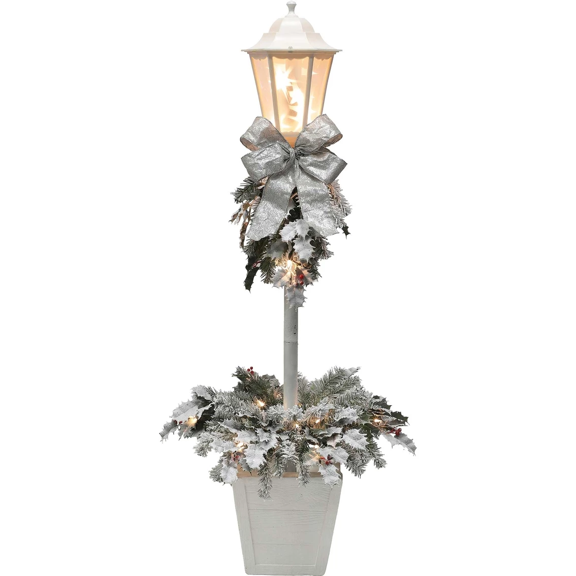 Pre-lit artificial holiday lamp post. This Puleo Christmas lamp post will light up the interior or exterior of your home. Winter blend accents. Equipped with 35 clear UL certified lights, and a decorative base. Indoor or outdoor use — the lamp post adds a holiday feeling both indoors and outdoors. Model: 301-0549-LP40C035.